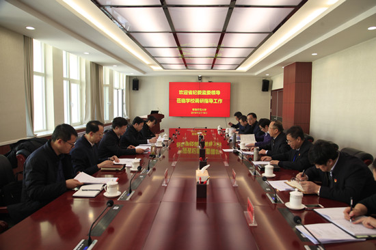 2月19日上午,省委常委、省纪委书记、省监察委员会主任滕佳材,省纪委副书记、省监察委员会副主任燕海茂一行莅临365官网调研指导工作,并就进一步深化我省高校纪检监察体制改革与365官网相关部门和部分学院负责人进行座...20 2019-02 -