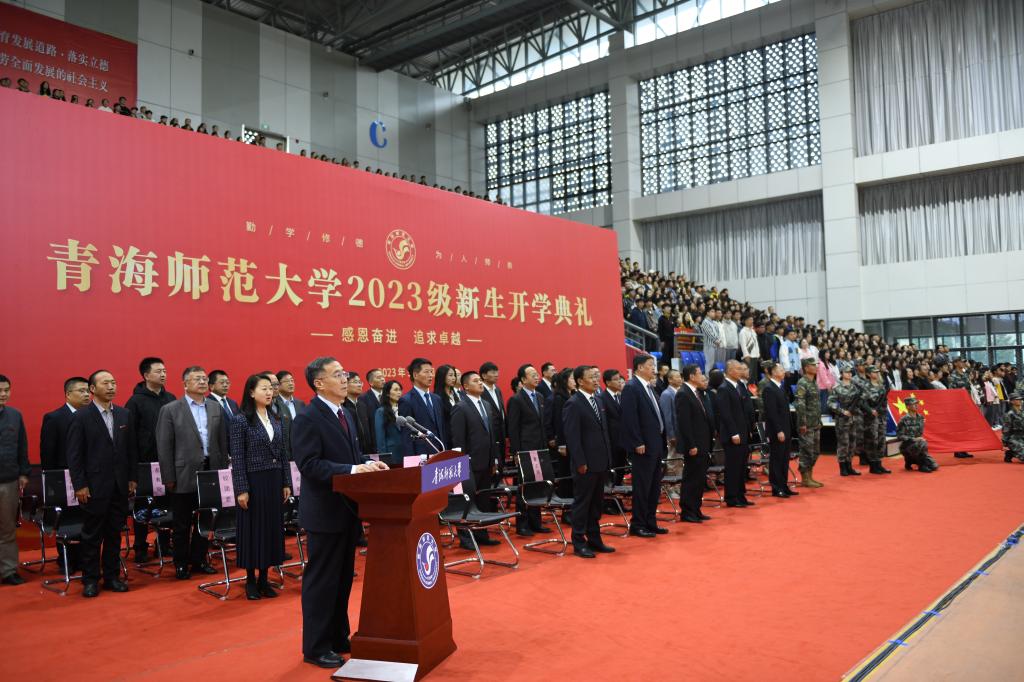 聚青春之火,谱盛世华章。9月8日上午,bat365在线平台登录2023级新生开学典礼暨军训动员大会在城北校区体育馆隆重举行。校领导毛学荣、涂清云、冶成福、张海军、董占明,相关职能部门、教辅单位、学院负责人、全体辅导员老师及新生代表共同开启属于新“师大人”的青春篇章,典礼由校党委副书记许存宁主持。