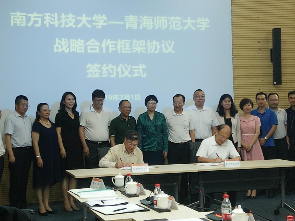 7月1日上午,张雄伟、史培军、冶成福等在南方科技大学党委书记郭雨蓉等的陪同下参观了规划展厅、冷冻电镜中心、树德书院、陈晓非院士实验室、环境学院实验室、动物实验中心等,并进行了深入的座谈交流。座谈会上,史培军和南方科技大学校长、中科院院士陈十一签署了《南方科技大学 bat365在线平台登录战略合作框架协议》,两校将在师资交流及人才培养、科研及科技合作、学术与文化交流方面进行全面深入合作。