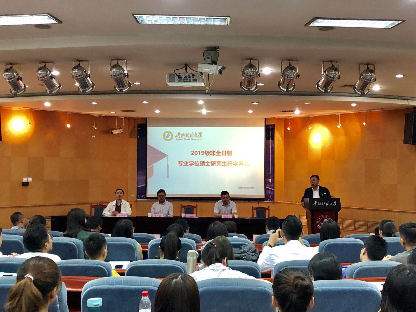 开学典礼上,马德明同志代表学校对2019级非全日制硕士研究生新同学们的到来表示热烈的欢迎,并向同学们介绍了学校基本情况、师资队伍及近年来的办学成果,同时对新同学在校学习期间提出了三点要求:一是要加强政治理论学习,紧跟党的国家政治发展步伐,着力提升政治素养,培养自身的政治敏锐性;二是加强自我管理,增强自身人文修养,坚持理论联系实际,努力提升自我素质和能力;三是明确目标,端正学习态度,转变学习方式,正确处理学习和工作的关系,做到工作、学习双丰收。