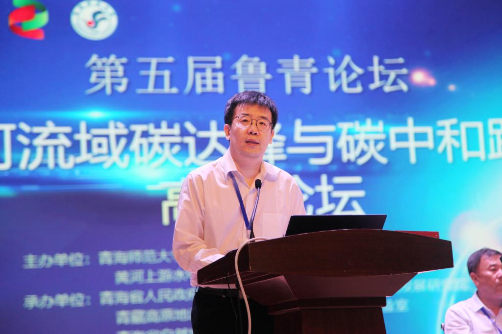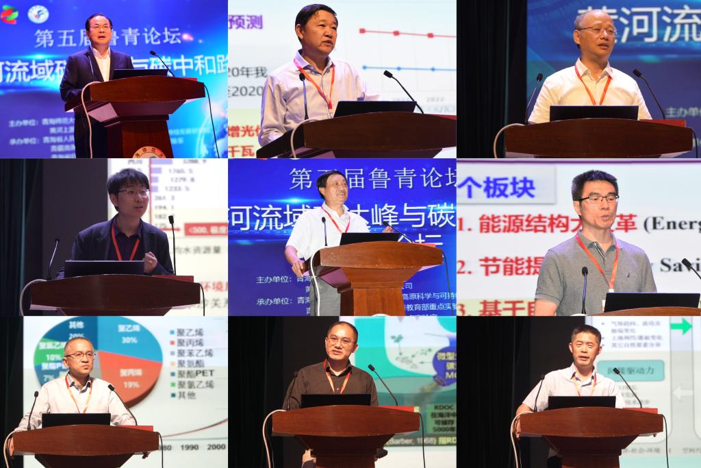 开幕式后,在由易凡和曹广超分别主持的论坛上,9位专家作了主旨报告。国家发改委原副秘书长范恒山教授提出运用系统思维和立体举措推动实现‘双碳’预期目标;黄河上游水电开发有限责任公司董事长谢小平教授从光伏产业的背景、发展光伏产业的必要性、光伏减排的生态效应等方面阐述了光伏产业在“双碳”中的重要作用;国际欧亚科学院院士、中国社会科学院生态文明研究所党委书记杨开忠分析了目前青海省绿色产业存在的不足与弊端,提出要通过发展高原数字经济提升竞争战略力;山东大学蓝绿发展研究院院长张宁教授分析了黄河流域碳达峰和碳中和的实现路径并进行政策设计;中国宏观经济研究院研究员肖金成提出黄河流域生态保护和高质量发展中生态补偿的机制构建,探讨碳排放路径设计与黄河可持续发展;清华大学教授黄跃飞提出了农林牧草固碳减排途径、光伏农业节水减碳等水土光协调的碳减排增汇路径;山东大学教授祁庆生介绍了废弃塑料污染形成与传统处理方式,分析合成生物技术在处理塑料污染和实现“双碳”目标中的重要作用;山东大学教授屠奇超阐述了海洋微型生物碳泵理论体系,提出减少营养盐的排放来保护海洋的固碳能力;北京师范大学教授于德永设计了青海省生态系统服务测量指标体系,并与其它相关测量体系进行了对比。
