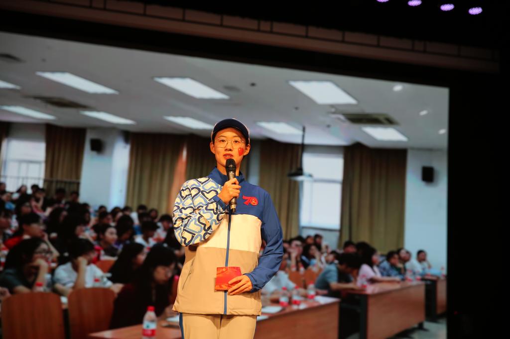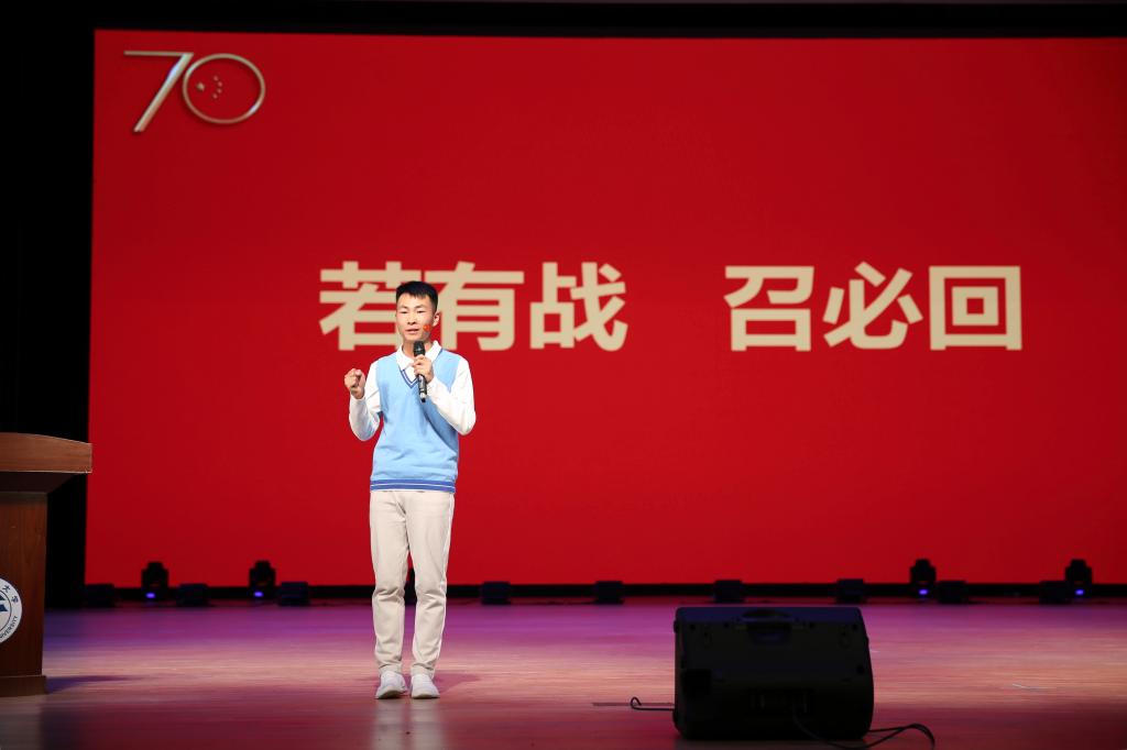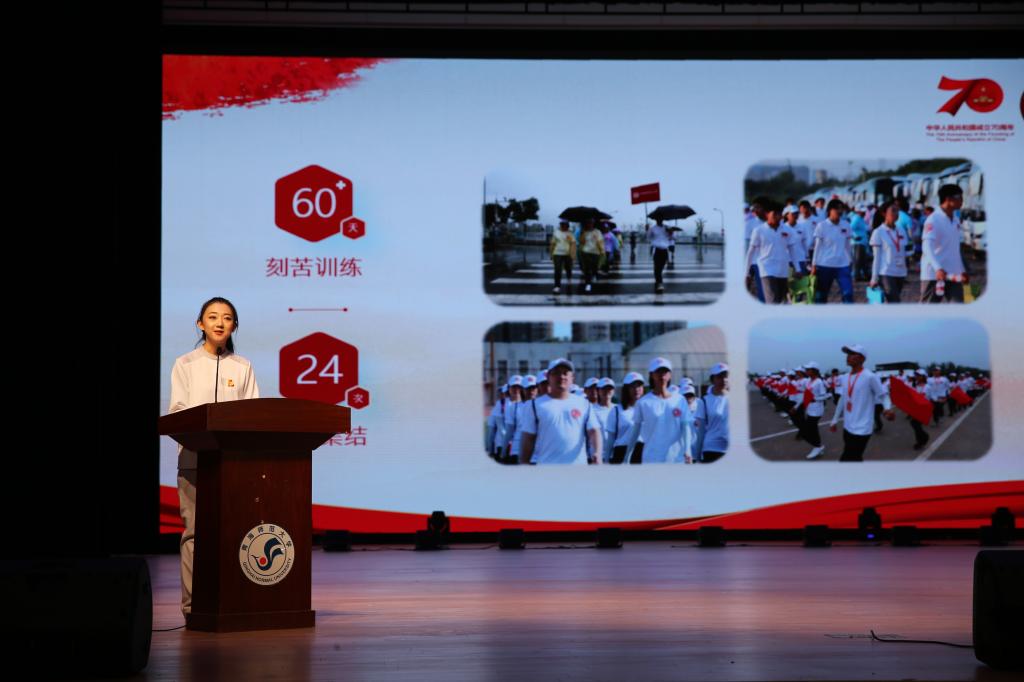 宣讲会上,10位宣讲团成员生动讲述了他们在不同岗位上舍假期、勤训练、担责任、同追梦的亲身经历和感人故事。当退伍大学生士兵王海生说出“若有战、召必回”的决心时;当合唱团成员范小迪将练了八十多天的国庆歌曲唱响在礼堂时;当吴媛媛深情款款讲述了她的“长安街十二时辰”时;当肖潇讲述了她68天136个日夜、8次校内训练,10次区级合练,4次市级合练,8种道具的变换,12支舞蹈的动作的数字故事时……全场响起了经久不息的掌声。