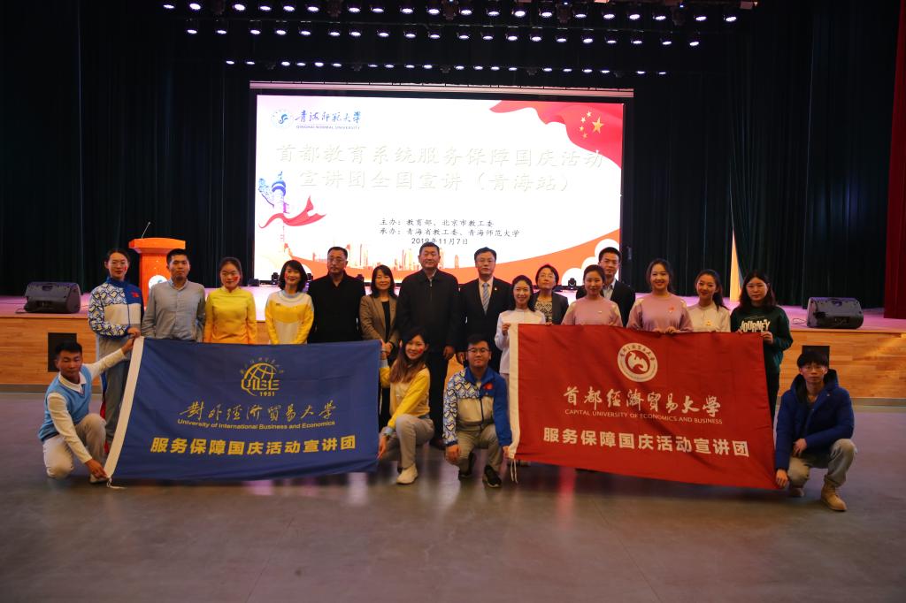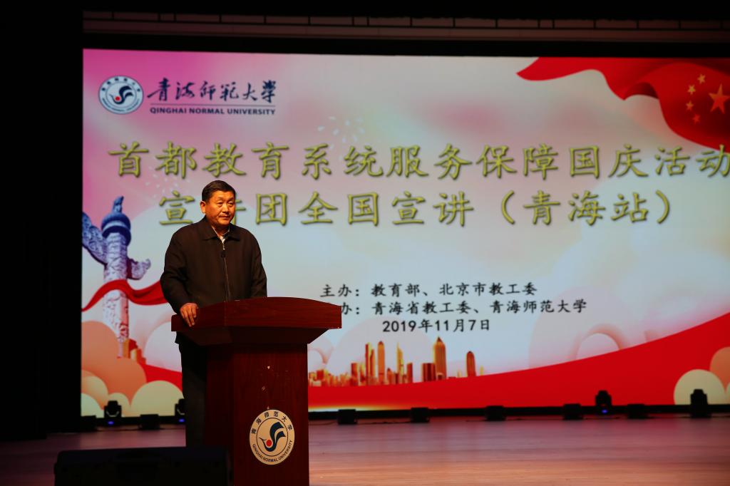 11月7日,首都教育系统服务保障国庆活动宣讲会(青海站)在365官网隆重举行。来自对外经济贸易大学和首都经济贸易大学的18位宣讲团的师生和西宁城市职业技术学院及bat365在线平台登录的近1000名师生共同参加了宣讲会。宣讲会由校党委常委、副校长扎布主持。