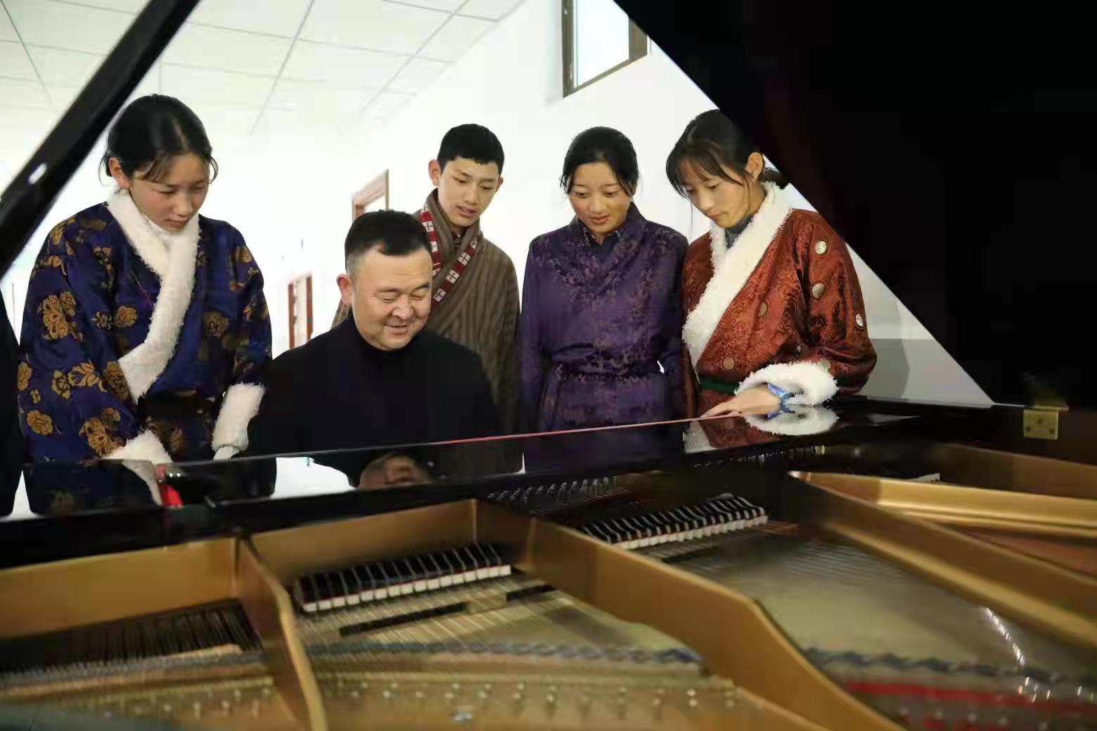 在美育课程建设上,他因地制宜,以突出体现当地灿烂的高原文化及非遗传承为总体设计,创造性地将当地极富民族特色的非遗文化作为选修课程或专业课程,邀请民间艺人,设立美育系列课程的名师工作室,开设了卓根玛舞蹈课程、佐玛手工编制课程、扎木聂演奏课程、黑陶制作课程等,让学生在民族文化的熏染中筑牢美育之基、养成美好人格、开创美好人生。学校也在他着力打造的圆融通透的全人美好课程引领下,向着具有民族特色的高原基础教育名校目标阔步迈进。