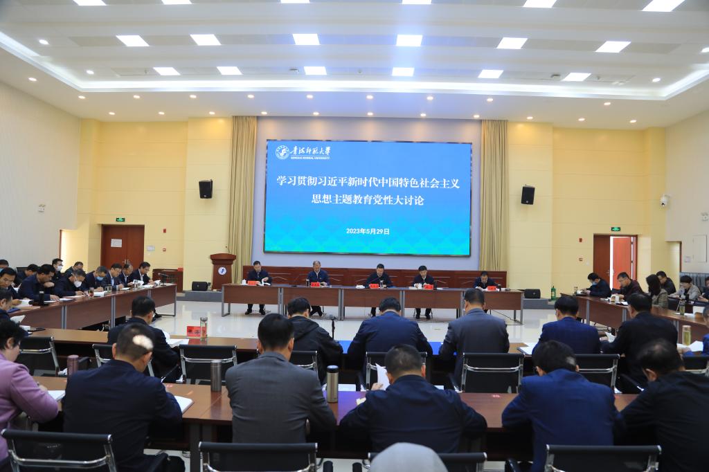 5月29日上午,bat365在线平台登录党委举行理论学习中心组学习会,以“如何在建设现代化新青海中体现和锤炼坚强党性”为主题,开展学习贯彻习近平新时代中国特色社会主义思想主题教育党性大讨论。校党委书记毛学荣主持并讲话,省委主题教育第七巡回指导组副组长陈亮莅会指导,校党委理论学习中心组全体成员和列席成员参加会议。