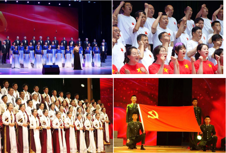 展演在机关党委的《少年》中拉开序幕,熟悉的歌声背后,是关于青春、事业和理想的岁月往事;深情的旋律之中,饱含着梦想、奋斗和奉献的家国情怀。合唱《游击队歌》《英雄赞歌》《在太行山上》《十送红军》《映山红》气势磅礴,生动展现在大革命的烽烟中,在艰险的长征路上,在抗日战争、解放战争的沙场上,中国共产党团结带领中国人民浴血奋战、淬火成钢站起来的伟大历程。离退休教职工合唱团带来的《共产党好比种子》,生动展现了共产党员像“种子”一样,在人民当中“生根开花”的群众路线。《在灿烂的阳光下》《我和我的祖国》《歌唱祖国》《走向复兴》回顾了热火朝天的社会主义革命和建设年代。民族师范学院师生带来《再唱山歌给党听》,他们身穿民族服饰,跳起民族舞蹈,把最美的歌儿献给党,在中国共产党领导下,各民族像石榴籽一样紧紧抱在一起,中华民族一家亲,同心共筑中国梦。合唱《国家》《祖国颂》《万疆》展示了新时代民族复兴的壮丽画卷,描绘了从富起来到强起来的历史巨变,感召中华儿女自信前行。展演结束,全场起立,共同高唱《没有共产党就没有新中国》,红色革命歌曲穿越历史时空,在活动中心上空久久回荡,热烈掌声经久不息。