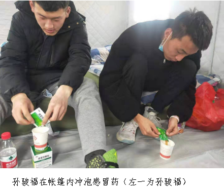 不仅如此,吃饭和用水也变得十分困难,刚开始的几天大家的主食仅有泡面,可饮用的热水也十分有限,在-4℃的环境下洗漱只能使用冷水。地震灾区的生活环境十分艰苦,但孙骏福并没有因此退缩,他表示这次的实习经历让自己学习到了很多,以后会把这些经验带到新的课堂教学中,不断充实和提升自我。面对各方援助,他说“很感谢党和政府及时捐赠的物资,让我们能度过这一段艰难的时光”,谈到这里,孙骏福的话语中满是感激。