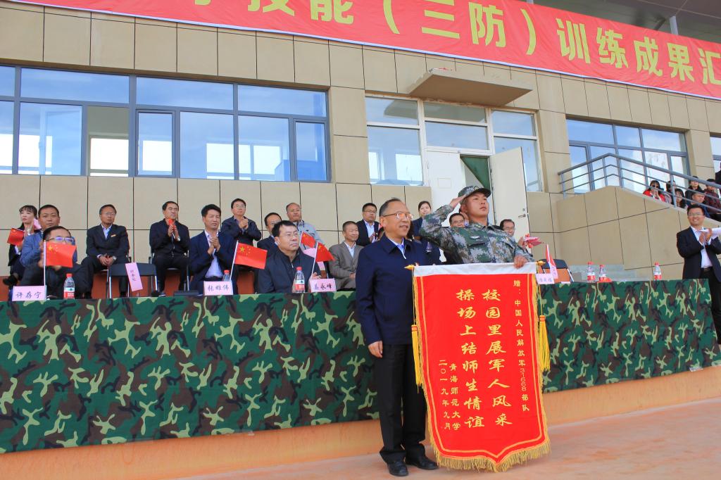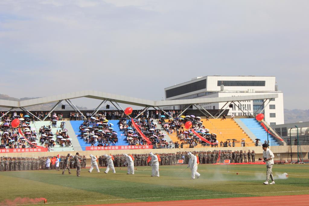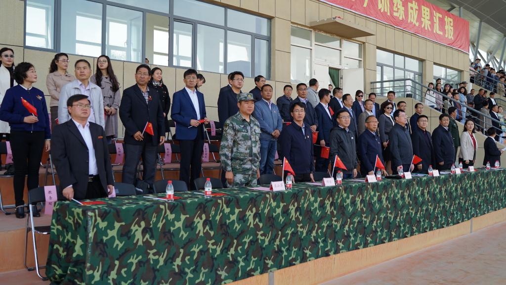 表演结束后,副校长冶成福对军训进行全面总结,他指出,军训是一个成长的阶梯,也是一段人生难忘的历练。参训学生迎烈日、冒风雨,克服了高原反应和水土不服等诸多困难,磨练了顽强的意志、培养了进取的精神、学会了军人的担当,更培养了团结协作的精神和纪律观念,形成了一种积极向上的良好学风和集体凝聚力。他希望同学们把在军训中感受到的团结互助精神带到今后的学习和生活中,勇于砥砺奋斗,发扬“缺氧不缺志气,艰苦不怕吃苦”的优良传统,用青春和汗水创造新成绩。