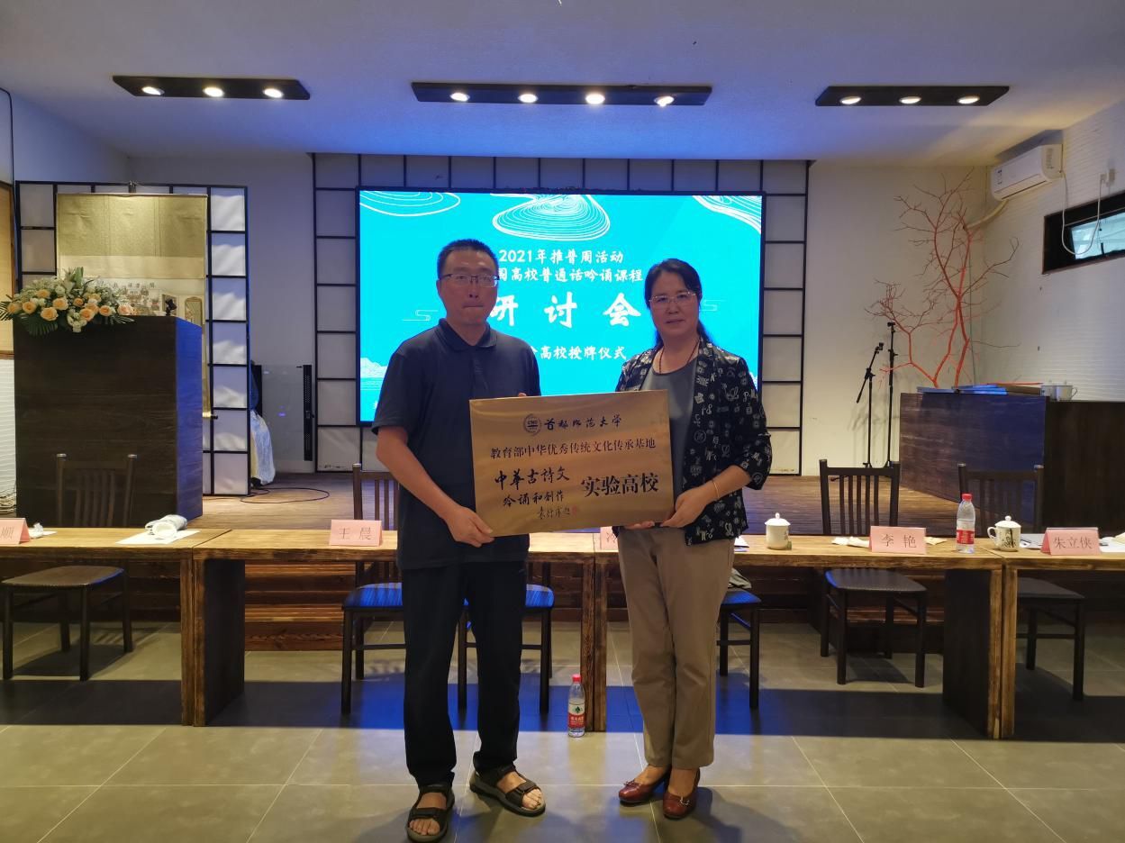 为贯彻落实《教育部关于开展中华优秀传统文化传承基地建设的通知》文件精神,传承发扬中华优秀传统文化,9月11日-13日,由首都师范大学文学院主办,教育部中华优秀传统文化传承基地和首都师范大学“中华古诗文吟诵和创作”传承基地协办的全国高校普通话吟诵课程研讨会暨实验高校授牌仪式在北京举行。
