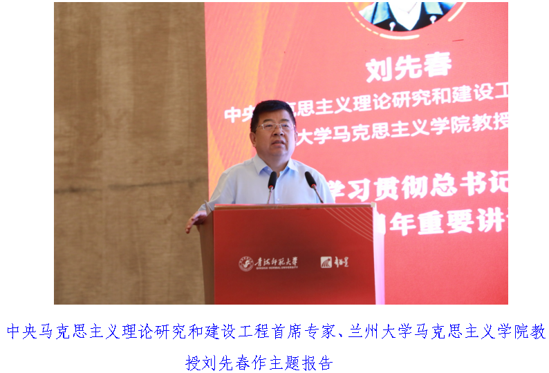 刘先春教授从教师在思政课教学育人中的重要角色、习近平总书记“七一”讲话如何融入思政课教学出发,对讲话的主体内容进行了详细的解读。他提出,习近平总书记的重要讲话科学解读了中国共产党的成功密码,明确了中国共产党的历史方位,发展了马克思主义建党学说,丰富了习近平新时代中国特色社会主义思想。