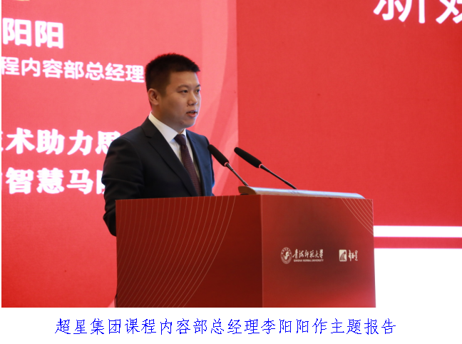超星集团课程内容部总经理李阳阳基于信息技术与思政育人融合,作“新媒体新技术助力思政课守正创新和智慧马院建设”的主题报告。他从政策、理论和时代背景出发,介绍了超星近年来为推动思政课改革创新所做的系列工作,强调在思政课教学和马院的信息化建设中资源、内容、教学模式个性化的重要性。他着重讲述了超星智慧马院基于海量思政资源、微服务技术、人工智能技术、大数据技术,立体化打造备课资源库、教学辅助系统、无纸化考试系统、实践教学系统、教师研修管理系统五大模块,满足教学互动、考试评价、实践教学、教师发展、集体备课、形势与政策教学及各高校马院个性化应用场景需求,构建1+5+N的整体解决方案。