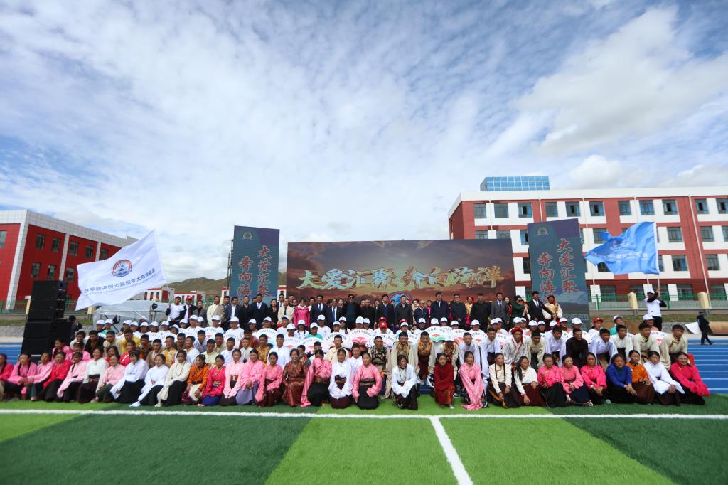 最后,昂格宣布学校正式落成,何勃、毛学荣、李有增、昂格、毛育生、冶成福、吉洛、欧格共同为“bat365在线平台登录附属玉树实验学校”校名揭牌,并一同观看附属玉树实验学校《大爱汇聚、奔向海洋》大型主题文艺演出。