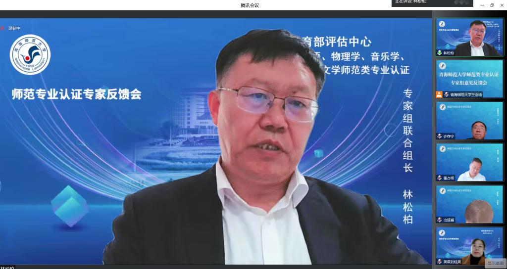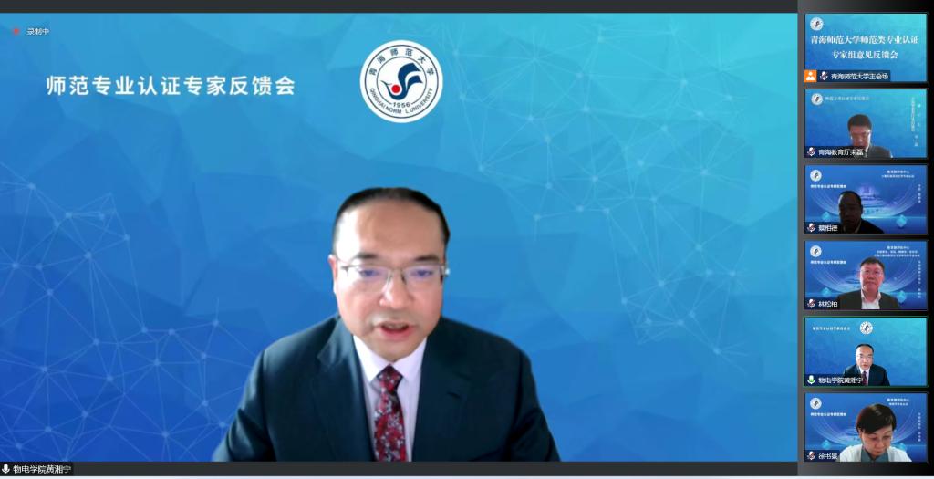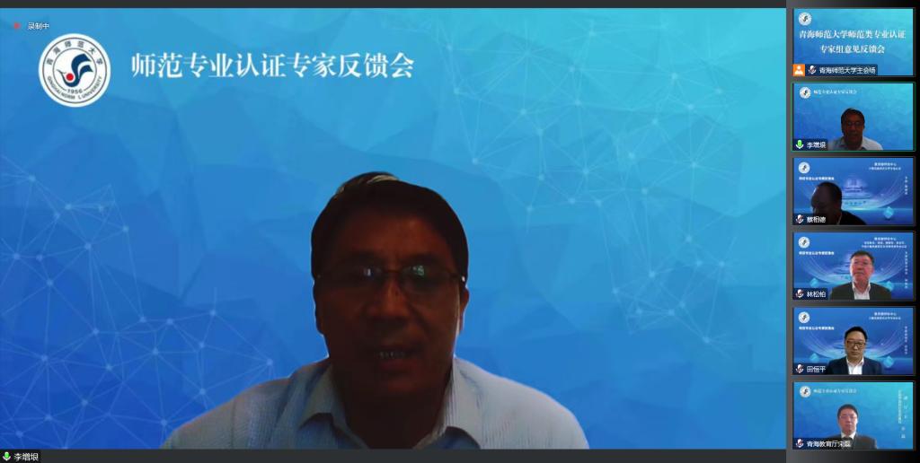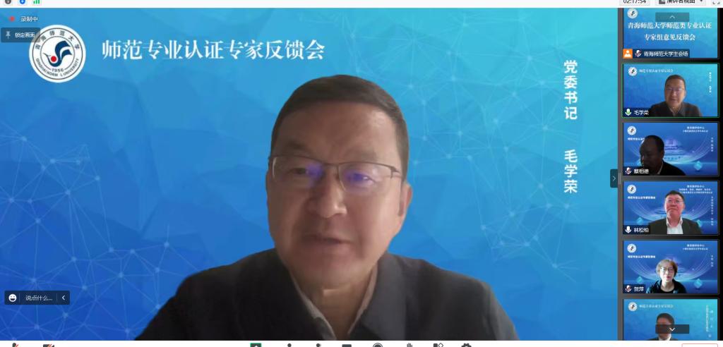 10月22日上午,教育部师范类专业认证专家考查意见反馈会以线上方式举行。专家组全体成员,青海省教育厅副厅长宋磊,bat365在线平台登录全体校领导、师范专业认证领导小组全体成员、全校副处级以上领导干部,教学督导、相关学院教研室主任、教务秘书、专业认证联络员,专家联络员,综合协调组、认证办公室、教务处全体工作人员,认证专业教师代表参加会议。会议由联合认证专家组组长齐鲁师范学院林松柏教授主持。