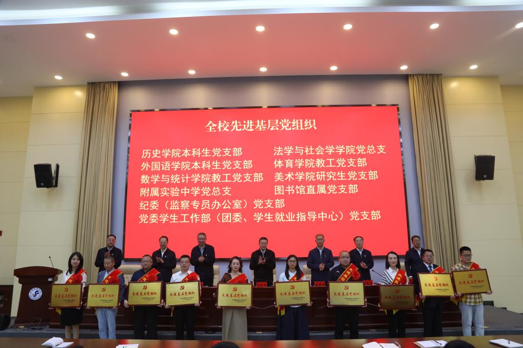 音乐学院、化学化工学院、外国语学院分别代表全校优秀党务工作者、优秀共产党员、先进基层党组织发言。大家表示将继续在党务工作上发挥党员教师示范带动作用,在创新学生党建工作形式上发挥表率作用,以严实标准、一流业绩回报党组织信任和关怀,为学校高质量发展作出自己的贡献。