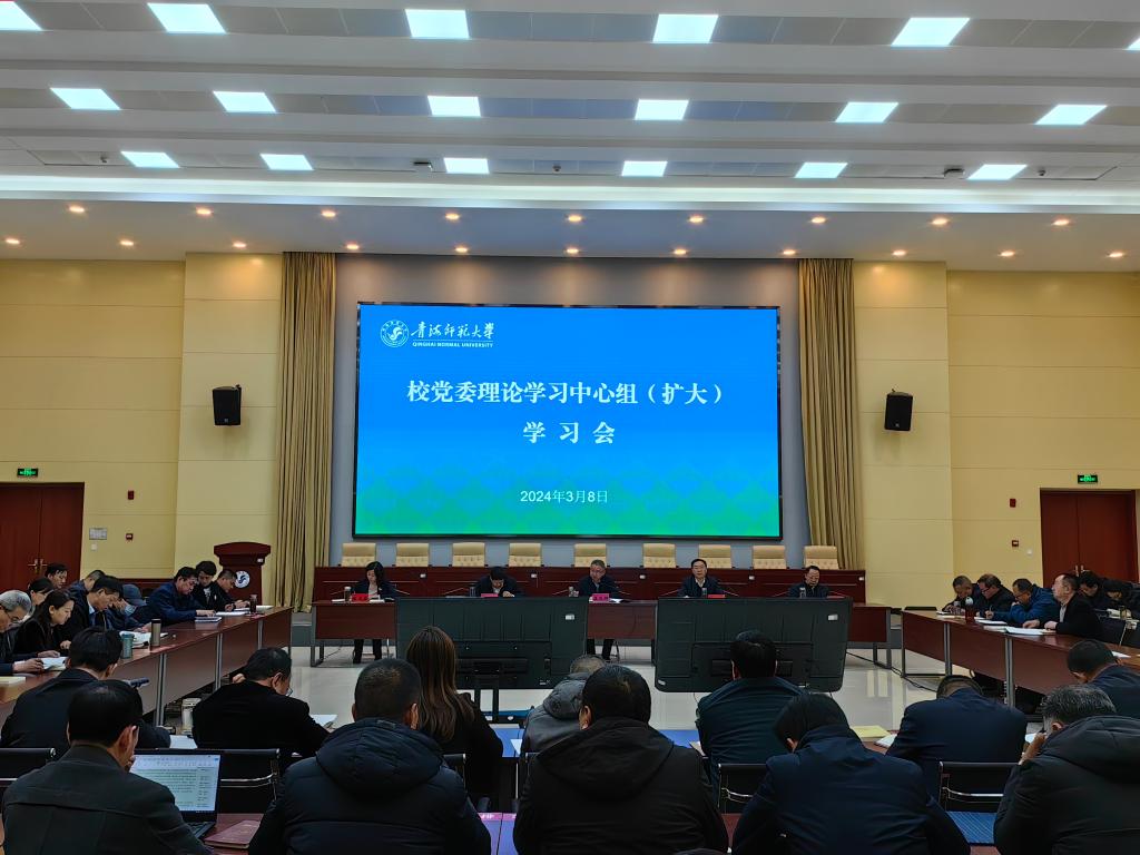 3月8日,bat365在线平台登录党委理论学习中心组(扩大)专题学习习近平法治思想,校领导崔廷辉、冶成福、张海军、陈雪梅,全校副处级以上领导干部参加学习会。党委副书记许存宁主持会议。