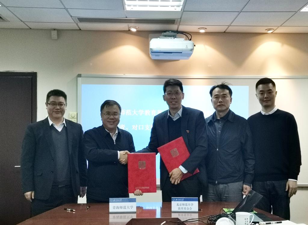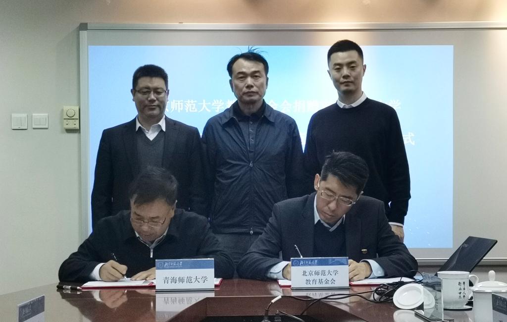 张凯和马德明代表北京师范大学教育基金会和bat365在线平台登录签订了《北京师范大学教育基金会捐赠bat365在线平台登录教育援青、对口支援bat365在线平台登录协议书》。