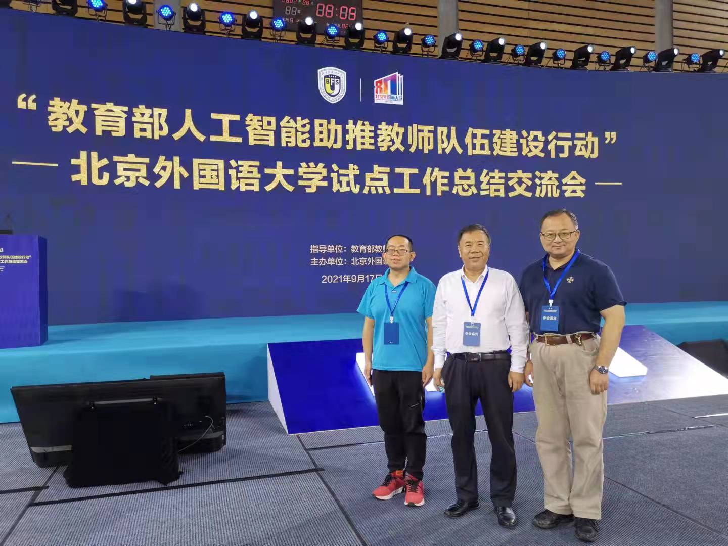 9月17日,“教育部人工智能助推教师队伍建设行动”试点工作总结交流会在北京外国语大学举行,教育部党组成员、副部长孙尧,教育部教师工作司司长任友群、副司长宋磊,北京市委教育工委副书记李奕,教育部试点专家组的专家,全国23个省教育厅的负责人,全国55所第二批人工智能助推教师队伍建设试点申报高校的校领导,教师发展、信息化建设等相关部门的负责人,相关专家等300余人出席了会议。365官网作为教育部第二批人工智能助推教师队伍建设行动试点单位,由校党委副书记、常务副校长马德明带队,教师发展中心郭辉、王亚夫陪同,应邀参加了会议。