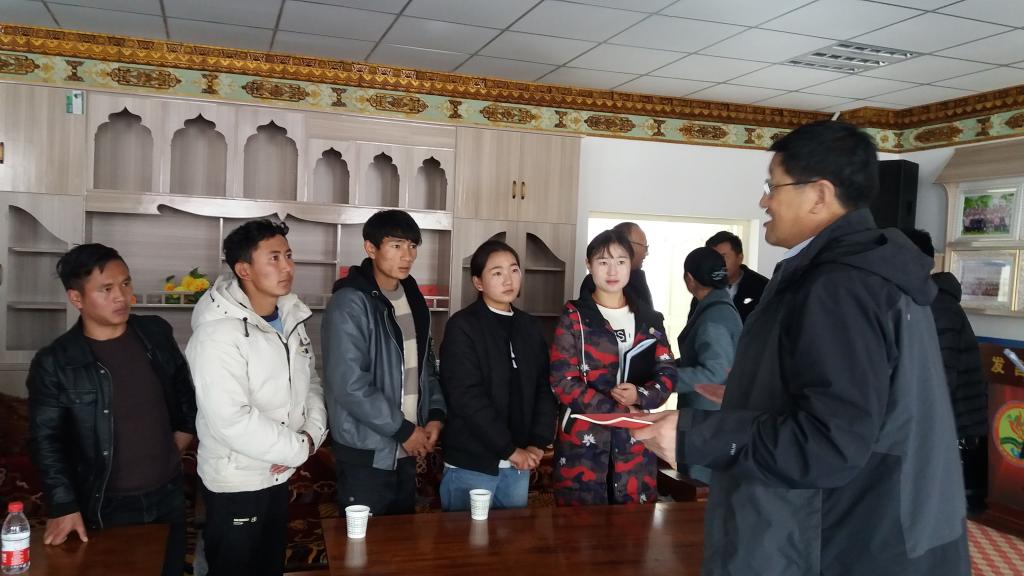11月25日,副校长冶成福同地理科学学院、基础教育处相关负责人前往玉树州囊谦县看望慰问了顶岗支教实习师生。玉树市副市长金官布,囊谦县教育局局长西然多杰、副局长扎西江措陪同慰问。
