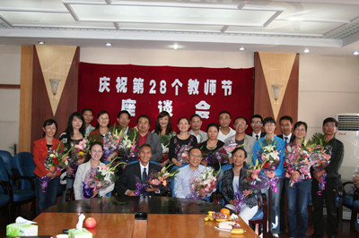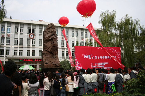 在第28个教师节到来之际,学校开展了一系列的庆祝活动。9月7日下午,召开了全校“师德标兵、优秀教师、优秀教育工作者表彰大会”,隆重表彰了在学校教育教学方面做出优异成绩的教师。9月10日上午,书记、校长亲自带队,重点走访慰问先进模范、专家学者、贫困教师以及离退休教师代表,送去校党委、校行政的关怀和温暖。9月10日下午,在北校区理化楼门前举办了由北京挂馨慈善基金会向365官网捐赠的“师魂”雕塑落成仪式及两场“师魂”大型公益交响音乐会。同时,在田家炳三楼会议室,召开了优秀教师和师德标兵座谈会,畅谈学习《高等学校教师职业道德规范》心得体会,共同研讨新时期师德内涵和建设途径。
