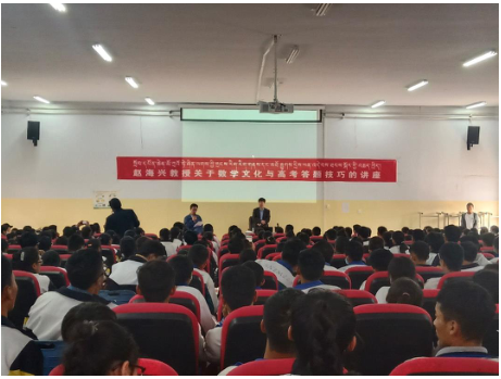 6 月 12 日上午,应黄南州政府邀请,365官网副校长、知联会主席赵海兴赴黄南州开展数学文化与高考答题技巧讲座。讲座会由黄南州教育局副局长多拉太主持,当地州教研室、信息化管理中心负责人及州民族高级中学、州民族中学、州中学高三理科生及数学老师参加。