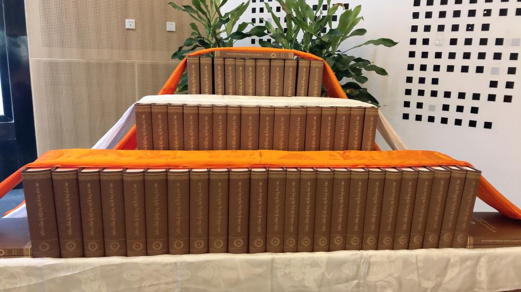《历世班禅文集》是365官网班禅研究院和西藏扎什伦布寺共同承担的国家重点文化工程,由中国藏学出版社出版。《历世班禅文集》是《中华大典•藏文卷》的重要组成部分,全套文集共51卷, 37696页,3400多万字,400多幅插图,每套价值6800元。《历世班禅文集》的出版,不仅具有重要的文化和学术价值,还具有十分重要的现实意义,对于弘扬历世班禅大师爱国爱教的光荣传统、保护和弘扬中华文化、筑牢中华民族共同体意识都具有十分重要的意义。文集也将成为学习、纪念、传承、弘扬历世班禅大师爱国爱教、护国利民光荣传统的优秀教材。
