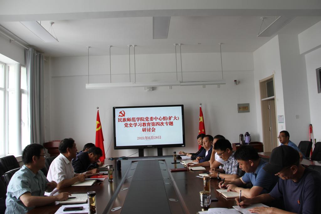 6月28日下午,民族师范学院党委召开中心组(扩大)党史学习教育第四次专题研讨会。学院中心组成员、各党支部书记共18人参加了研讨会,会议由党委副书记王荣主持。