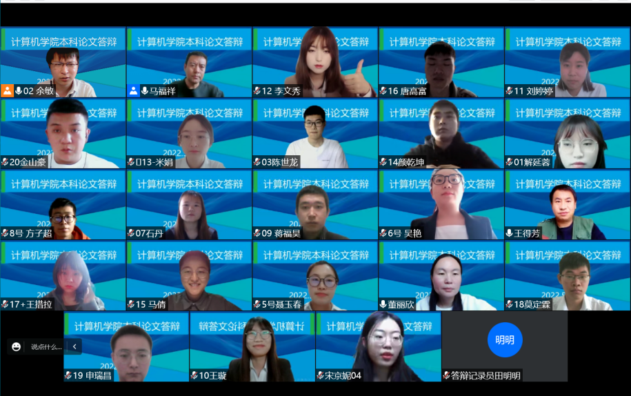 5月18日,计算机学院对预毕业的270名同学,分为12个小组分别进行了本科毕业生论文线上答辩会,特别邀请到校外专家蒋志方老师参加。