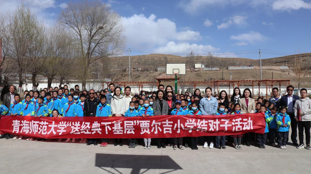 4月 14日下午,新闻学院教职工党支部全体党员和部分学生代表前往湟中区贾尔吉民族小学开展了“大手拉小手,齐声诵与读”为主题的党日活动。
