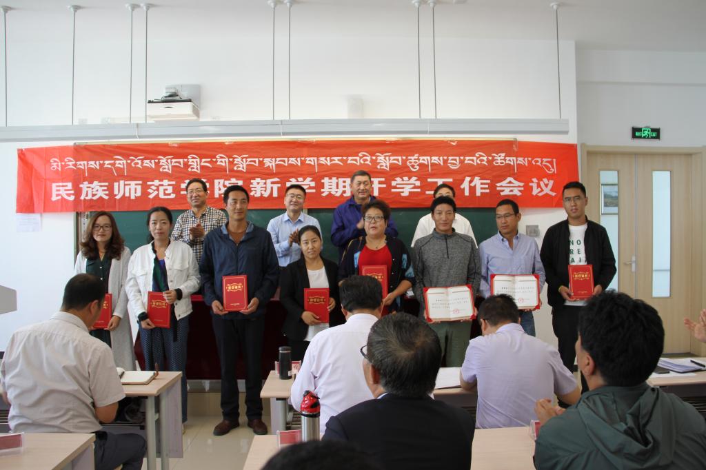 会上,首先集中学习了中共中央办公厅、国务院办公厅《关于深化新时代学校思想政治理论课改革创新的若干意见》精神;吉太加副书记全面总结上学期工作的同时,指出存在的主要问题和不足,同时还就新学期第一堂课、党建思政、意识形态工作、学生安全稳定等各项工作提出了相应要求。之后对校党委会审议通过的《民族师范学院党建质量提升工作方案》作了解读;陈永良副院长对校党委会审议通过的《关于完善本科教育教学工作实施方案》作了解读;随后会议表彰了教师教学技能竞赛、师德师风建设、人才培养质量综合素质测评等方面取得优异成绩的集体和个人,有3个集体11名个人受到表彰。