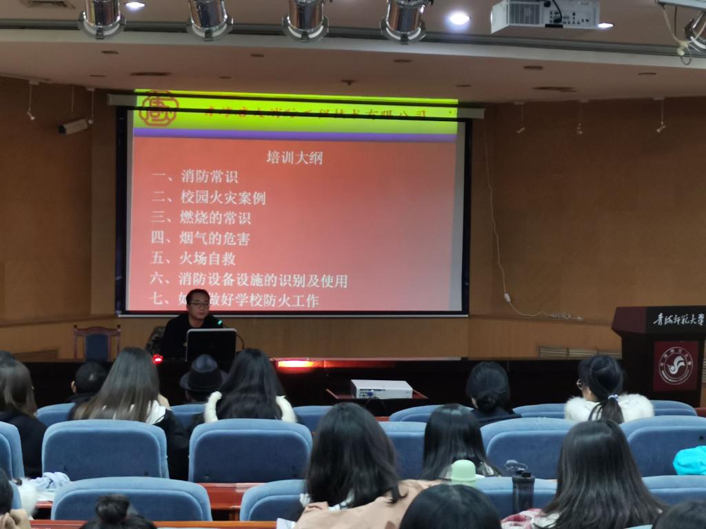 杜建磊工程师主要从消防常识、校园火灾案例、燃烧的常识、烟气的危害、火场自救、如何正确使用灭火器、如何做好校园防火工作七个方面进行详细的讲解。并举了因大学生缺乏消防知识,违反宿区规定,违规使用大功率电器而酿成悲剧的典型案例,使听众深刻体会到消防安全对于大学生在宿区中的重要性,以及进一步提高宿区管理人员的消防安全知识的紧迫性。