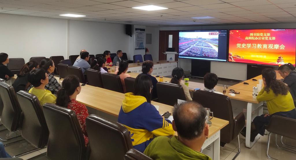 7月1日上午,图书馆党支部、高科院办公室党支部在高科院2号会议室举行党史学习教育观摩会,并集中观看了庆祝中国共产党成立100周年大会的现场直播。