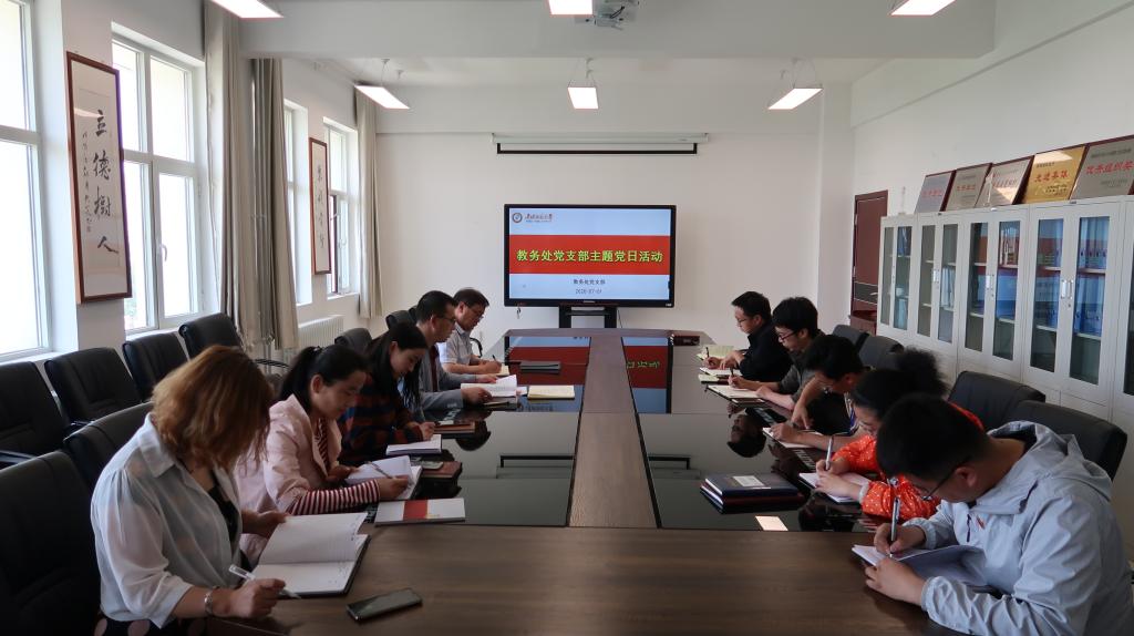 7月1日,教务处党支部举行了主题党日活动暨支部党员学习会议,活动和会议由教务处党支部书记马俊主持,教务处党支部全体党员参加了活动和会议。