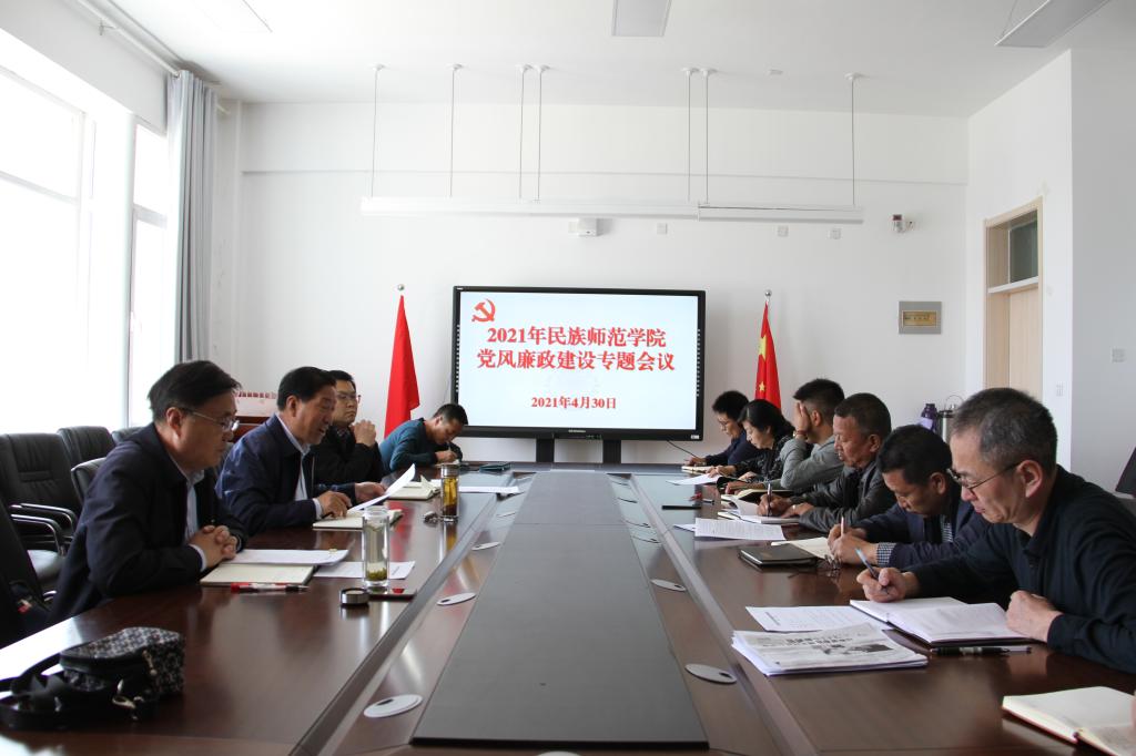 4月30日下午,民族师范学院党委召开党风廉政建设专题会议。学院各党委委员、各部门负责人、各党支部书记参加会议。会议由院党委书记、副院长吉太加主持。