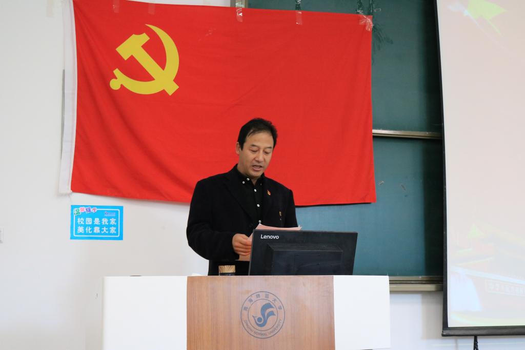 仪式上,党总支组织委员郭占龙宣读了校党委批准入党及按期转正的通知,统战委员耿生玲为新发展的预备党员发放了主题教育学习资料并为他们佩戴党徽,纪检委员黄鹤鸣结合党风廉政建设及近期学习心得作了交流发言,文体委员才智杰组织学习了学校和学院“不忘初心、牢记使命”主题教育工作方案。