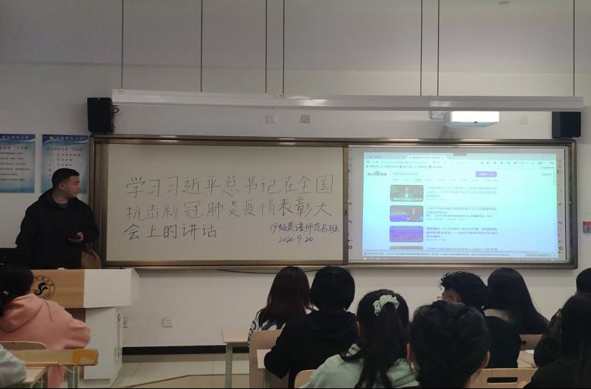 三是主题班会营造氛围。9月20日晚,学院各班召开了学习“习近平总书记在全国抗击新冠肺炎疫情表彰大会上的讲话”主题班会,通过学习总书记讲话精神,同学们分享了抗疫故事、畅谈了认识和体会,弘扬了生命至上、举国同心、舍生忘死、尊重科学、命运与共的伟大抗疫精神,厚植了爱国主义情怀,坚定了实现中华民族伟大复兴的精神力量。