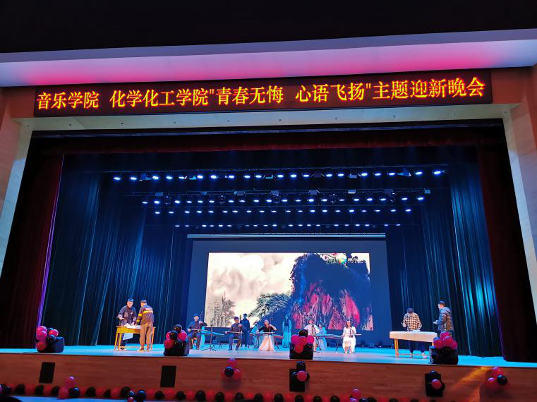 11月20日,由化学化工学院与音乐学院联合举办的“青春无悔,心语飞扬”主题迎新晚会在大学生活动中心举行。