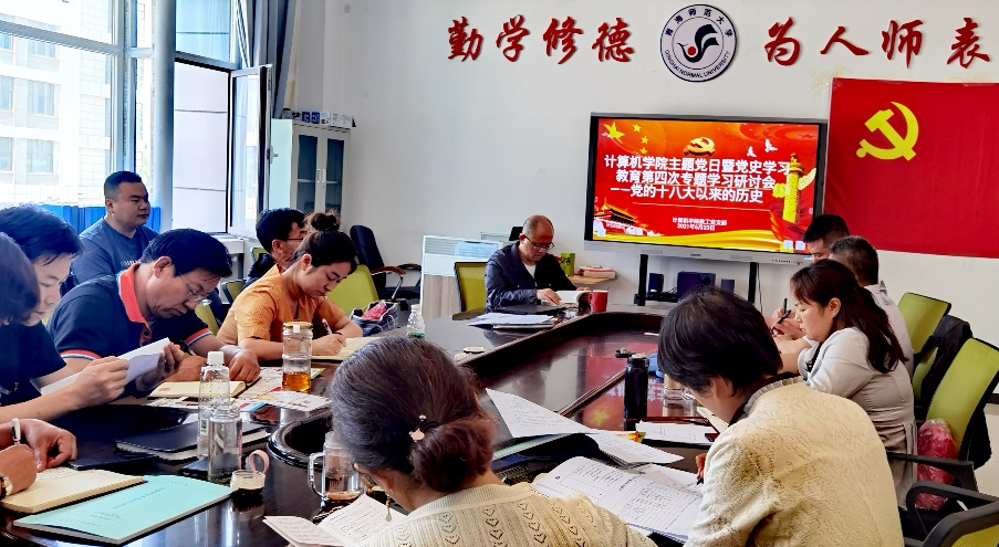6月23日下午,计算机学院教工党支部召开主题党日暨党史学习教育第四次专题研讨会,会议由教工支部书记彭春燕主持,会上重温了入党誓词,并以党的十八大以来的历史为主题进行了专题学习研讨。