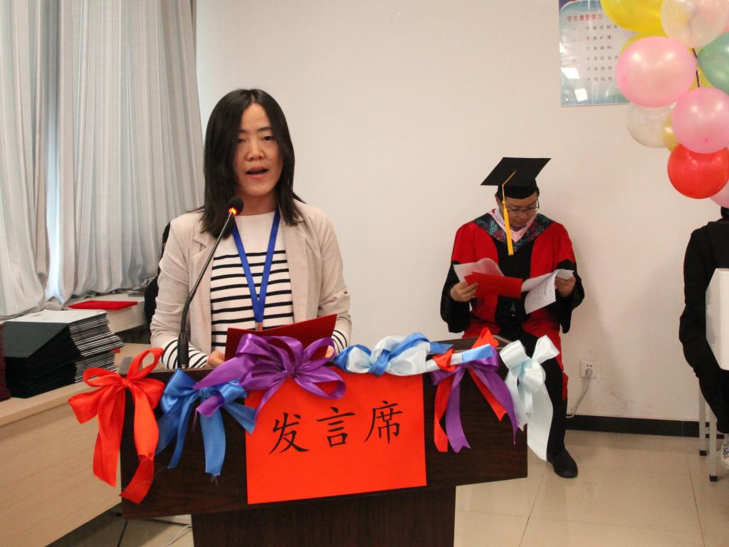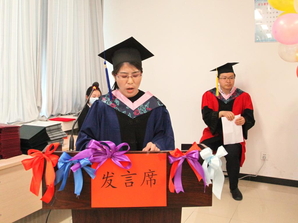 苏晓萍老师代表学院全体教师发言。她讲到,每一位同学都是学校精心培育的种子,希望大家不忘“勤学修德、为人师表”校训,带着母校的期望走向祖国的大江南北,让青春之花盛开在祖国大地。