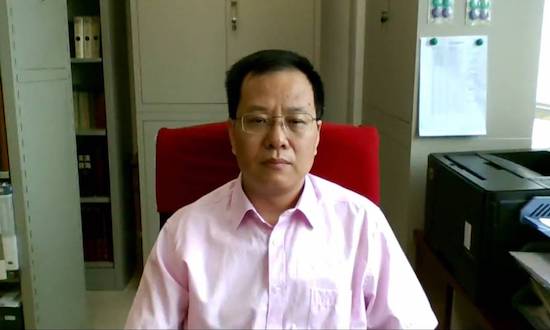 在东二楼103、F105两个教室,采取线上授课方式,利用投影仪与腾讯会议,使同学们与程教授相约云端、进行互动。
