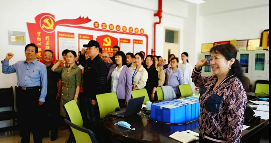 活动中,同志们胸戴党徽,在党旗前进行庄严的重温入党誓词。田正雄诵读党章党规部分章节,进一步了增强党员的纪律规矩意识、强化党员党性观念,。 曹玉林带领大家一起学习加强和改进落实意识形态工作认识等内容,鼓励大家勇于担当敢于作为,锐意改革,进一步推动意识形态工作责任落实,尽职尽责完成本学期的各项工作任务。耿生玲为各位党员解读宣传“红色精神”,在“七一”这个特殊时刻,更加意义深远,再一次起到了感召、凝聚和净化人心的作用。