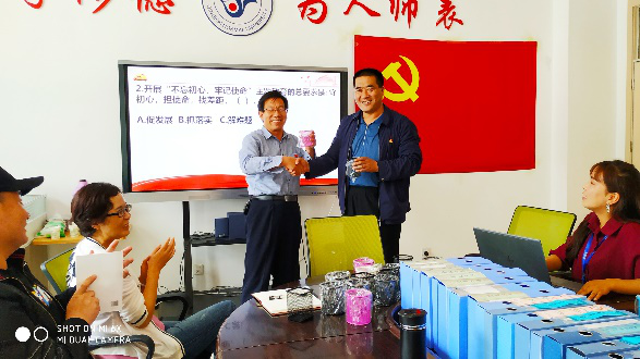 最后,由宣传委员仁青卓玛主持开展了“党的知识及新冠肺炎知识”有奖竞答活动,大家积极踊跃发言,在热烈欢乐的气氛中结束了本次庆“七一”建党99周年主题党日活动。