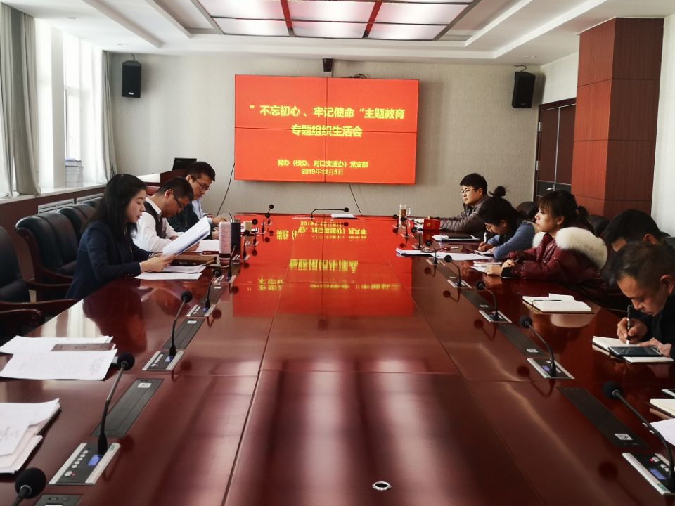 根据校党委主题教育工作领导小组部署安排,党办(校办、对口支援办)党支部于12月5日在行政楼南四楼会议室组织召开了“不忘初心、牢记使命”主题教育专题组织生活会,党支部全体党员参加。会议由党办(校办、对口支援办)党支部书记程剑波同志主持。