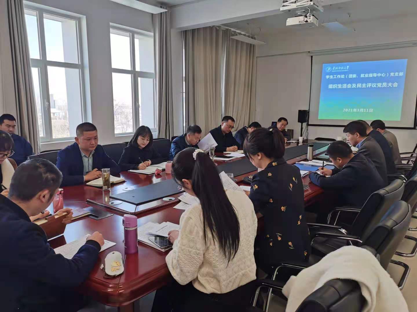 3月11日上午,学生工作处(团委、就业指导中心)党支部在行政北三楼会议室召开组织生活会和民主评议党员大会。校党委副书记许存宁同志以普通党员身份参加,校党委常委、宣传部长牟昱苍到会指导,会议由支部书记周晶主持。
