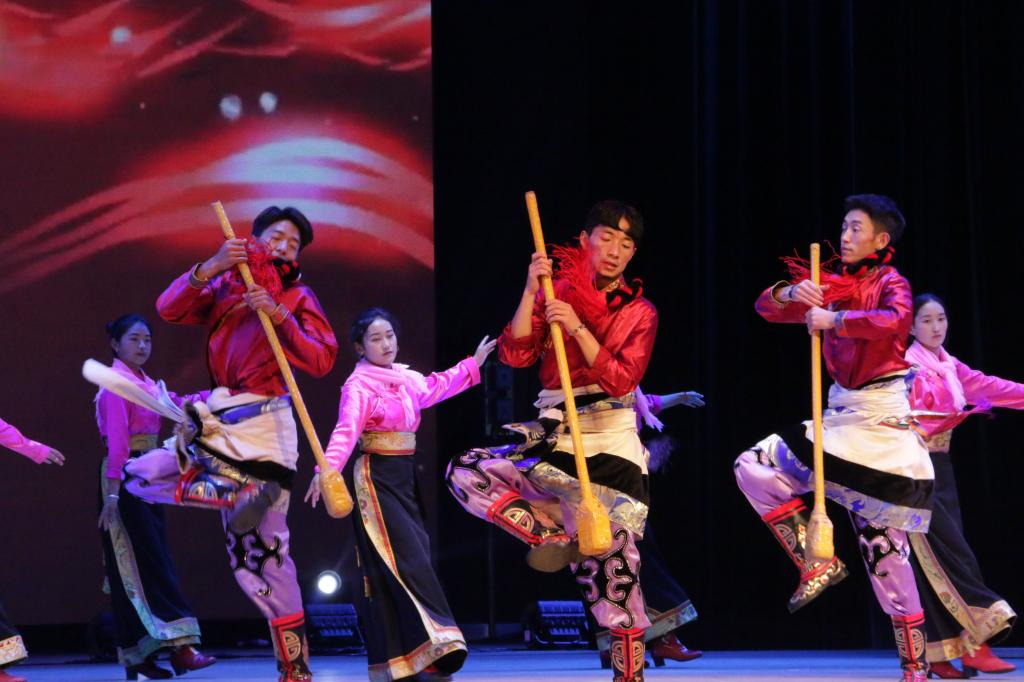 汇演第一篇章《青春,为祖国喝彩》,表达了对党的热爱,讴歌了伟大祖国,盛赞了大美青海。舞蹈《再唱山歌给党听》,演员学生用优美的舞姿,再现了亿万华夏儿女的心愿。“哦,中国!我要为你写一首诗,用太阳金色的语言,用心海浩瀚的蔚蓝;哦,中国!我要为你画一幅画,用春天百花的色彩,用五星红旗的光芒。”这是同学们在《青春中国》诗朗诵中为祖国发出的赞美;第二篇章《青春,相会新师大》,表现了同学们在美好的青春岁月相遇新师大不断追梦,努力实现理想。《跃动的风采》呈现了当代大学生的青春风貌,《师院琴韵》则展示了学院学子多才多艺的综合素质;第三篇章《青春,筑梦新时代》,充分反映青年学生面对美好新时代,展望未来、不忘初心、自强不息、担当使命的豪情与自信,《欢欢喜喜新时代》深情地表达学子们对新时代的热爱和朝气蓬勃奋进新时代的昂扬精神状态。