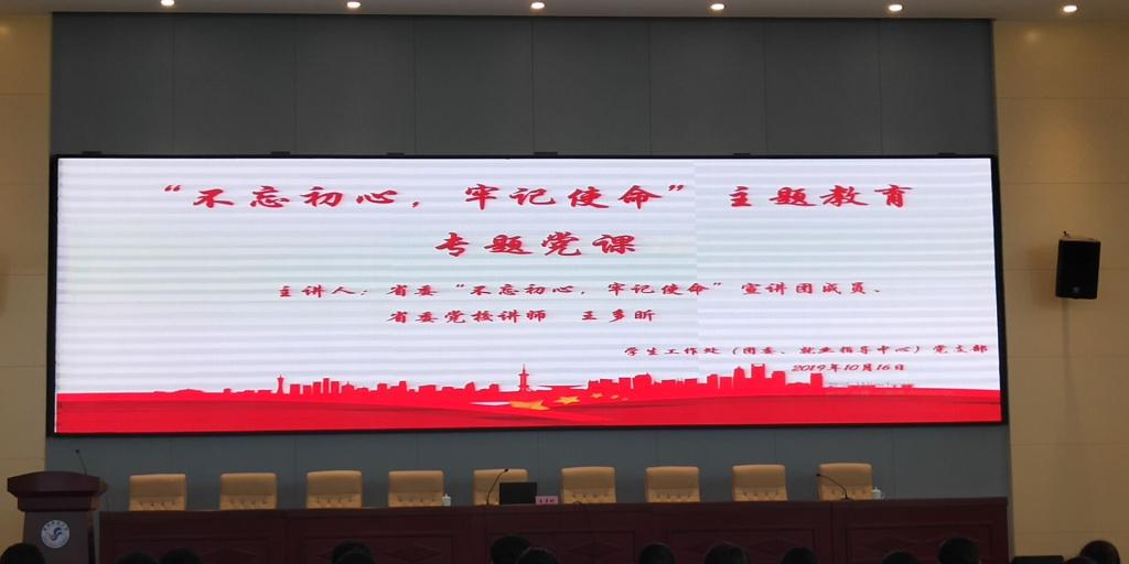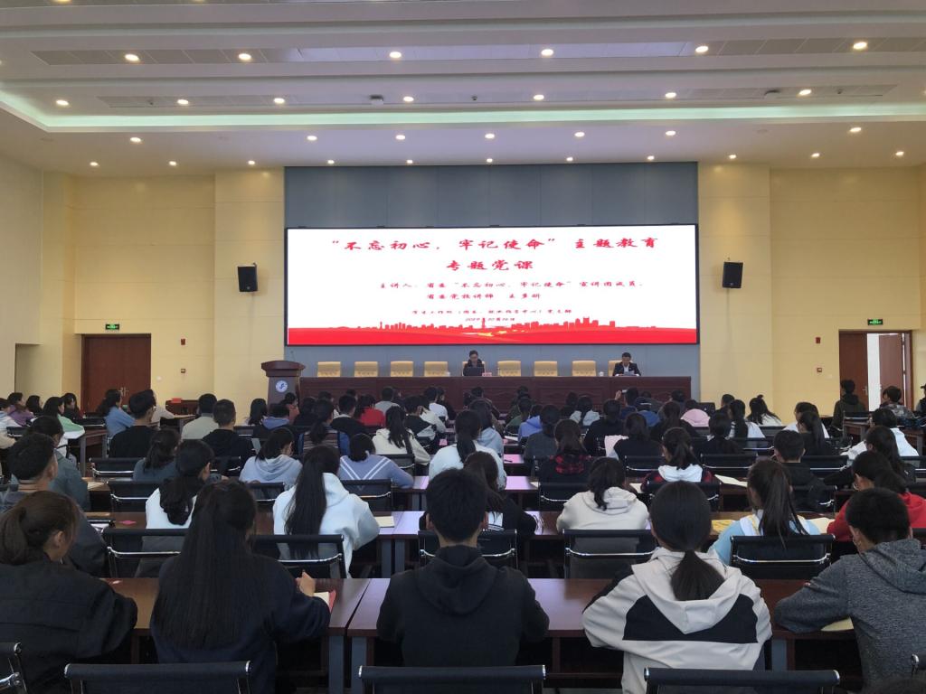 为深入落实“不忘初心,牢记使命”主题教育活动,学习贯彻习近平总书记关于学习党史、新中国史的重要论述,在学习领悟党史、新中国史中不断深化对“不忘初心,牢记使命”的认识和理解,持续增强守初心、担使命的思想自觉和行动自觉,学生工作处(团委、就业指导中心)党支部于10月17日下午举办了“不忘初心,牢记使命”主题教育专题党课,邀请省委“不忘初心,牢记使命”宣讲团成员、省委党校讲师王多昕老师讲授《从党的历史看牢固树立四个意识》专题党课,党支部全体党员以及各学院学生党员代表200余人参加了此次党课活动。