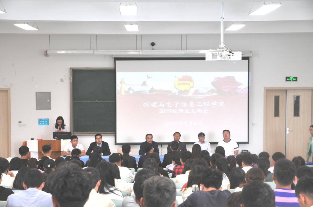 9月8号下午,物理与电子信息工程学院举行了2019级新生见面会。常务副院长黄湘宁、党总支副书记王敬佩、学院办公室、教务科、学生科全体教师、各学生组织主要干部及2019级研究生、本科生参加了会议。见面会由汪彦春老师主持。