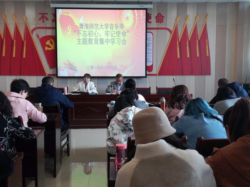 10月9日下午,音乐学院党总支开展“不忘初心、牢记使命”主题教育集中学习会。学院领导班子成员及全体师生党员、入党积极分子参加了会议。会议由党总支副书记宋睿青主持。