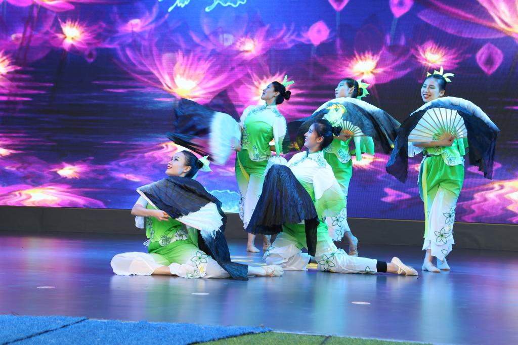晚会在群舞《我的新衣》中拉开帷幕,共有14个精彩的节目相继上演。“八女抗日展英气,十月投江为殉国,英灵浩然荡九霄,乌斯浑河慰忠魂”,群舞《八女投江》受到了观众的一致好评。舞毕,观众们眼中闪烁着泪花,心情久久不能平复;《那条长路》表现了红军长征之路的坎坷,宣扬了伟大的革命精神;《冲出雾霾》意在唤醒人们的环保意识。同学们通过各种舞蹈形式展示了他们扎实的基本功,精彩的表演博得了台下群众的阵阵掌声。《康巴热舞》更是将演出推向了高潮。