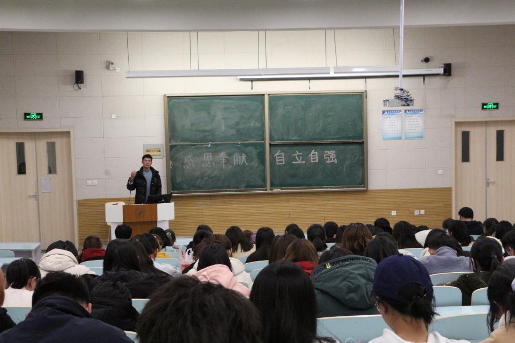 12月4日,新闻学院举办“感恩奉献、自立自强”资助育人专题讲座。学院123名国家助学金获得者和21名校奖学金获得者听取了讲座,讲座由新闻学院教师李广帅主持。