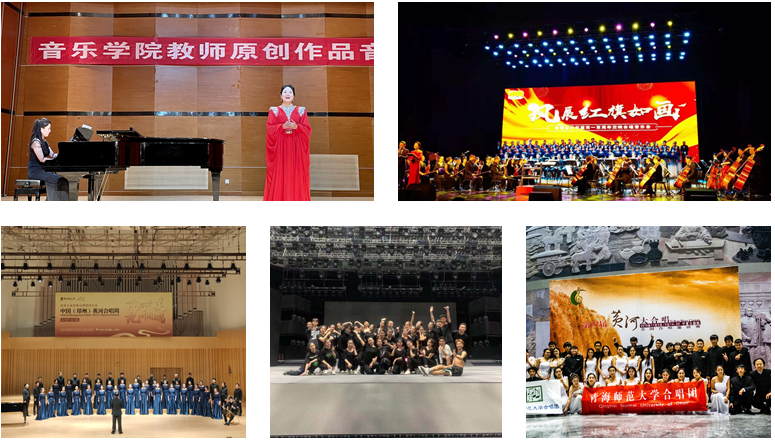 同时,音乐学院师生还受邀参加全国及全省各级各类庆祝活动。合唱团赴河南参加“中国郑州‘黄河合唱周’”,因优秀的表现获邀将参加2021年比利时世界合唱比赛、2024年新西兰世界合唱比赛等赛事。参加由青海省委宣传部、青海省文联、青海省广播电视台、青海省舞蹈家协会、青海省音乐家协会、城北区委政府等单位组办的“永远跟党走”歌咏大会、“风展红旗如画”交响合唱音乐会、“荷花奖”民族民间舞大赛、第十四届青少年声乐器大赛、“初心如磐跟党走”大型文艺晚会等活动11场次。学院师生获声乐、器乐、舞蹈大赛奖项22项,各类活动参与师生800余人次。